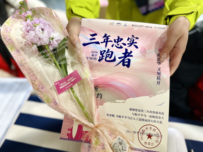 在奔跑的人潮中,有一群“最熟悉的名字”格外引人注目。他们是连续三年参与临平半程马拉松的“铁杆跑者”,连续三年的坚守,代表着每位跑者无可替代的奔赴之心。为感谢他们对临平半马的一路陪伴,组委会在领物现场为跑友们准备了“三年忠实跑者”证书和鲜花,感谢他们用奔跑为临平半马注入了温暖而持久的力量。